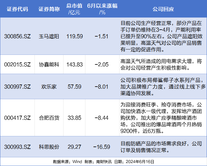 协鑫能科(002015.SZ)表示,公司在回复投资者提问时表示,高温天气所造成的用电需求大增,将会对公司经营产生积极性影响。