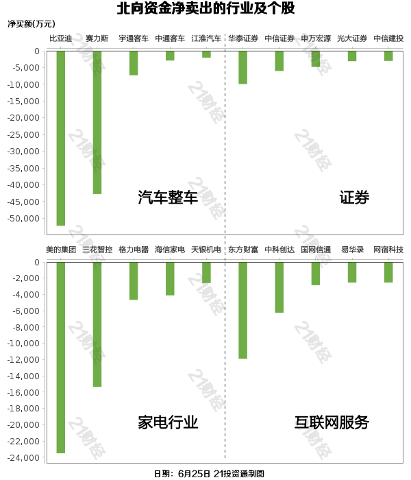 据21投资通智能监测,6月25日,北向资金净卖出33.67亿元,其中沪股通净卖出9.12亿元,深股通净卖出24.56亿元。