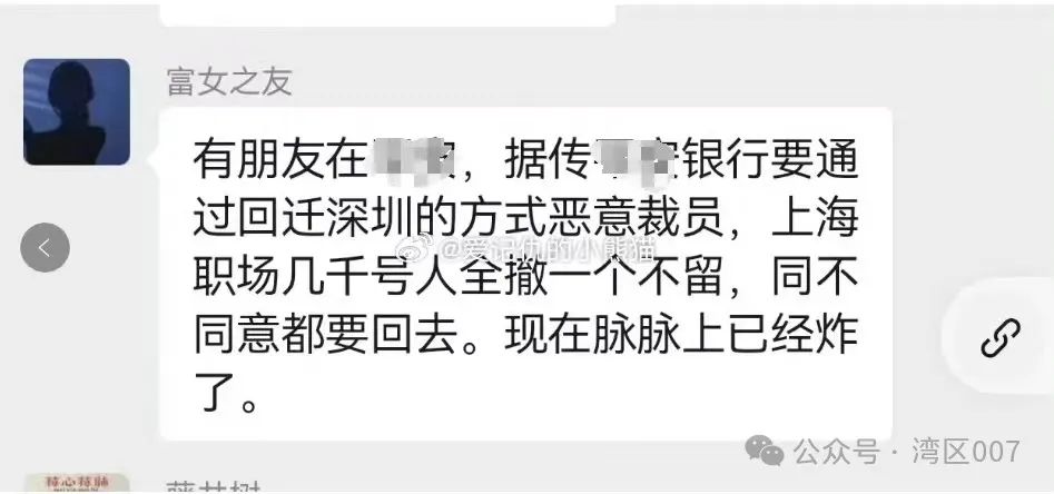 有朋友在平安,据传平安银行要通过回迁深圳的方式恶意裁员,上海职场几千号人全撤一个不留,同不同意都要回去。现在脉脉上已经炸了。