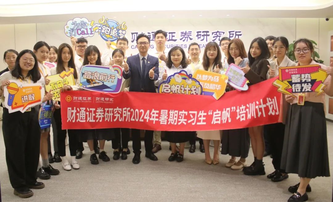 6月28日,财通证券研究所举办了2024年暑期实习生“启帆”培训计划欢迎会,近30余名优秀学员参与了本次活动,其中研究条线40%的实习生本硕来自于C9与QS前十院校,博士率达20%。会上对研究所基本情况和暑期培训进行了详细介绍,邀请优秀前辈分享职场经验,开展了高效团队组建活动,学习职业基本素养与职业发展规划。希望在短暂的暑期期间,帮助实习生快速了解财通研究,收获一段充实而愉快的经历。