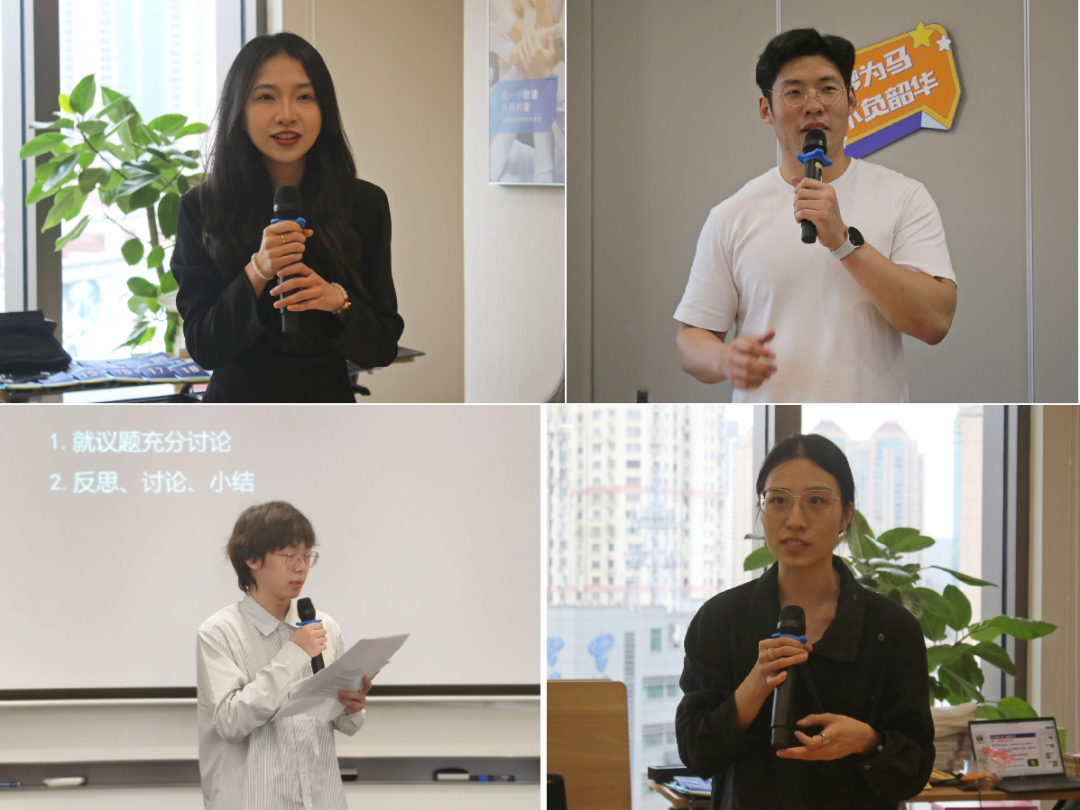 为了进一步强化团队建设的理念,阮老师巧妙地运用趣味游戏作为教学工具,生动地展示了高效团队所需的关键要素:快速捕捉信息的能力、有效的沟通技巧以及团队成员之间的相互信任。这些活动不仅增加了培训的趣味性,也让实习生们在轻松愉快的氛围中学习到了团队合作的重要性。