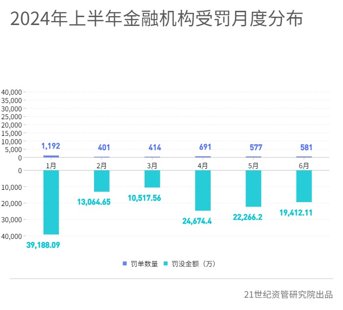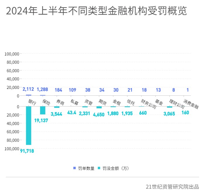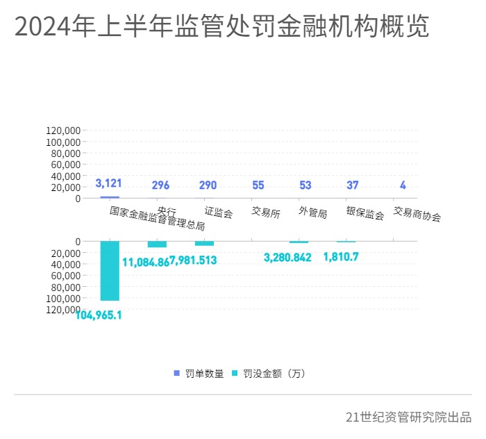 21世纪资管研究院研究员 唐曜华 今年上半年,金融机构共收到3856张罚单,罚没金额合计12.91亿元。
