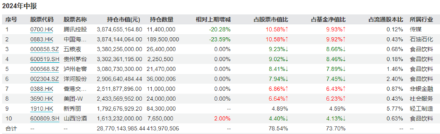 而在他管理的其他基金里,中海油和腾讯各自占据重仓股的“C位”,同时白酒股、招行等也是他长期钟爱的品种。