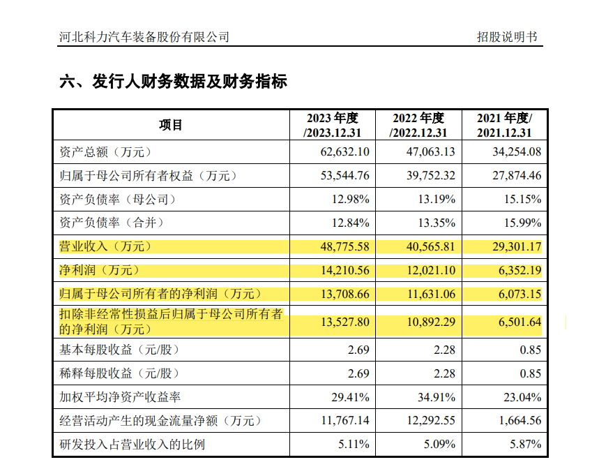 9、参与战略配售的投资者在本次公开发行中获得配售的股票数量和限售安排:本次发行的战略配售由发行人的高级管理人员与核心员工参与本次战略配售设立的专项资产管理计划(即长江资管星耀科力汽车员工参与创业板战略配售集合资产管理计划(以下简称“科力装备员工资管计划”))和其他参与战略配售的投资者组成。根据最终确定的发行价格,参与战略配售的投资者最终获配数量为2,516,666 股,约占本次发行数量的 14.80%,其中科力装备员工资管计划最终战略配售股份数量为 1,666,666 股,约占本次发行数量的 9.80%;其他参与战略配售的投资者最终合计获配数量为 850,000 股,约占本次发行数量的 5.00%。参与战略配售的投资者获配股票的限售期为 12 个月,限售期自本次公开发行的股票在深交所上市之日起开始计算。限售期届满后,参与战略配售的投资者对获配股份的减持适用中国证监会和深交所关于股份减持的有关规定。