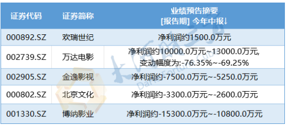 市场的表现,不仅导致院线龙头万达电影净利润大幅下降。记者梳理发现,截至7月19日,已有5家电影上市公司放出上半年业绩预告,仅欢瑞世纪扭亏为盈,博纳影业、金逸影视及北京文化的盈利情况均不尽如人意。