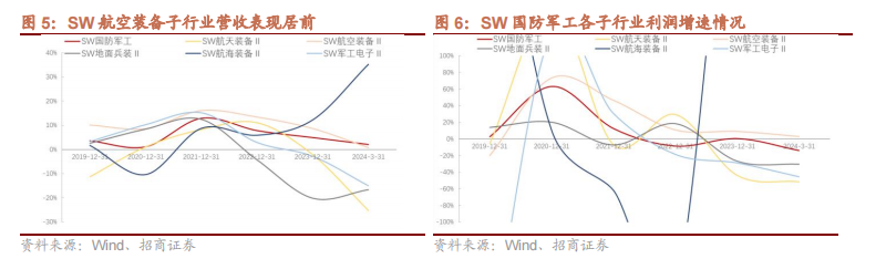航天装备&军工电子子行业:23年及24Q1业绩呈现加速下滑趋势。