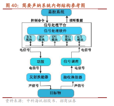 深海信息化是水下攻防体系的重要发展趋势,声纳是主要的载体。声纳是一种利用声波在水下的传播特性,通过电声转换和信息处理,完成水下探测、定位和通讯任务的电子设备,是水声学中应用最广泛、最重要的一种装置。声纳作为最重要的观通工具,现在所有的特种作业船只均装备有不同类型的声纳,以适应水下应用的需要,同时也广泛应用于港口、岛礁水下探测、水下观通、水下小目标探测等领域。声纳亦可应用于船舶导航、海洋石油勘探、陆地油井数据采集传输、水下作业、海洋地震海啸灾害预警、水下搜救、水文测量、鱼群探测等领域,具有广阔的应用空间。