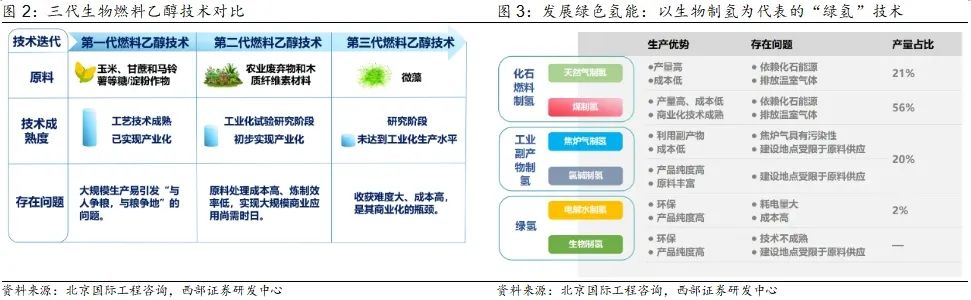 1、生物能源,通过生物质生产生物乙醇、生物柴油、生物航煤等生物燃料,实现高污染化石原料的替代。比如以生物制氢使用生物质为原料,替代了化石燃料制氢、工业副产物制氢等传统制氢方式。此外,生物光伏(BPV)利用光合微生物(如蓝藻)捕捉太阳能来生产电能(尚处实验室开发阶段)。《2024-2025年节能降碳行动方案》提出合理调控石油消费,推广先进生物液体燃料、可持续航空燃料……因地制宜发展生物质能,统筹推进氢能发展。