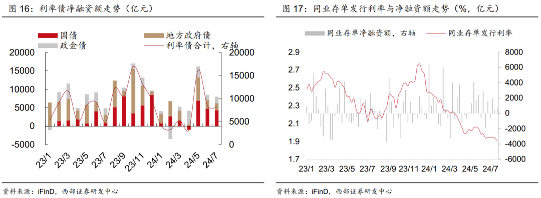 4、利率债净融资小幅回落,但强于去年同期,存单量价齐跌。