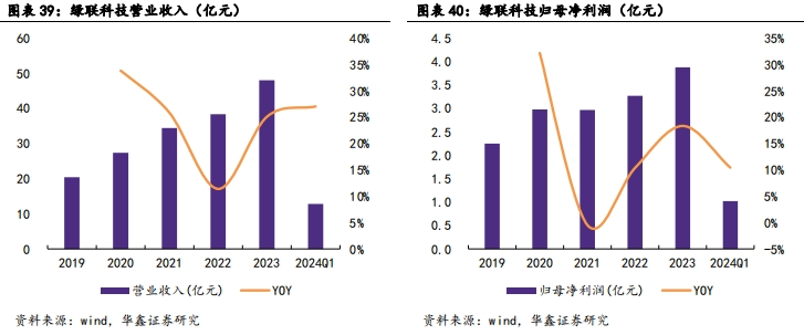 2023年实现营收48.03亿元,2019-2023年CAGR为23.80%;2023年实现归母净利润3.88亿元,2019-2023年CAGR为14.59%。公司2019-2024Q1年分别实现营业收入20.45亿元、27.38亿元、34.46亿元、38.39亿元、48.03亿元、12.84亿元,2020-2024Q1年YOY依次为33.85%、25.88%、11.4%、25.09%、27.06%;2019-2024Q1年分别实现归母净利润2.25亿元、2.98亿元、2.97亿元、3.27亿元、3.88亿元、1.02亿元,2020-2024Q1年YOY依次为32.20%、-0.47%、10.39%、18.35%、10.44%。