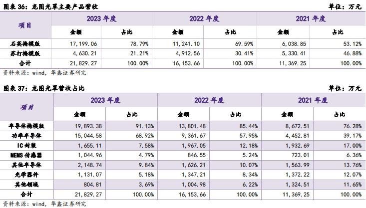 龙图光罩主营业务为半导体掩模版的研发、生产和销售,公司主要产品为掩模版,是集成电路制造过程中的图形转移工具或者母板,承载着图形信息和工艺技术信息。掩模版的作用是将承载的电路图形通过曝光的方式转移到硅晶圆等基体材料上,从而实现集成电路的批量化生产。掩模版广泛应用于半导体、平板显示、电路板、触控屏等领域。