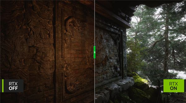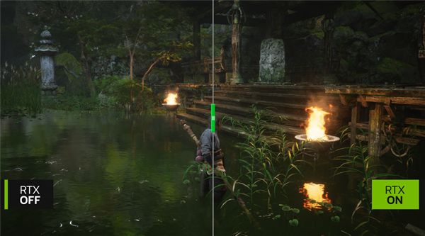 据了解,《黑神话:悟空》支持全景光线追踪及NVIDIA DLSS 3.5光线重建技术,宣传片中展示了对比场景,突出了光线追踪技术带来的视觉效果提升。