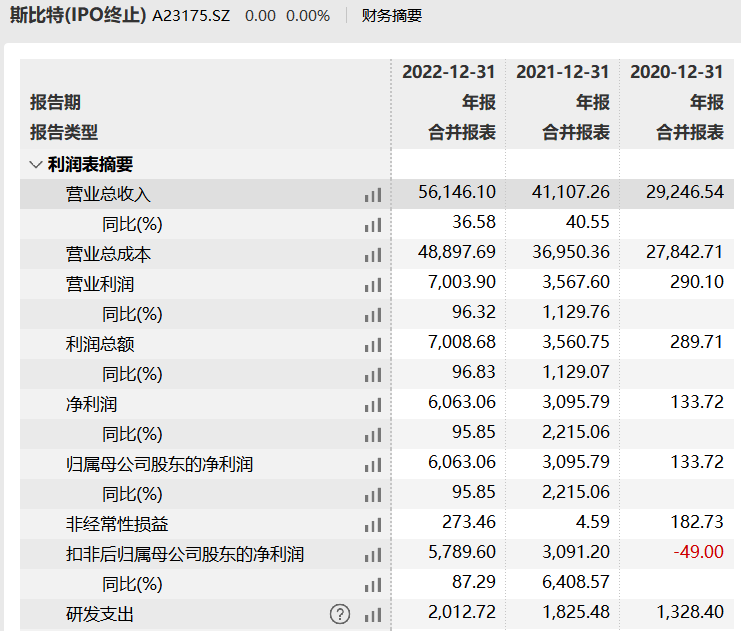 招股书显示,2020年-2022及2023年上半年(以下称“报告期”),斯比特的营收分别为2.92亿元、4.11亿元、5.61亿元及2.99亿元;净利润分别为133.72万元、3,095.79万元、6,063.06万元及2,928.02万元。