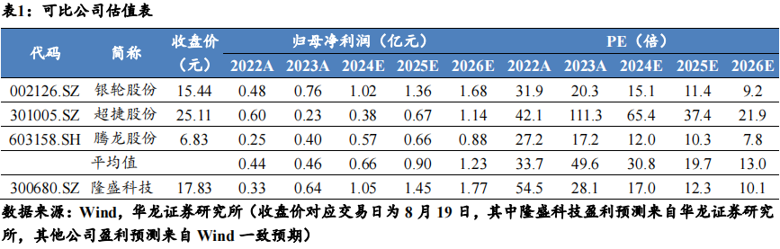 盈利预测及投资评级:公司在手订单饱满,布局商业航天有望打开成长空间,预计公司2024-2026年归母净利润分别为2.43/3.36/4.10亿元,当前股价对应PE为17.0/12.3/10.1倍,可比公司PE平均值为30.8/19.7/13.0倍,隆盛科技估值低于可比公司平均估值,维持“买入”评级。