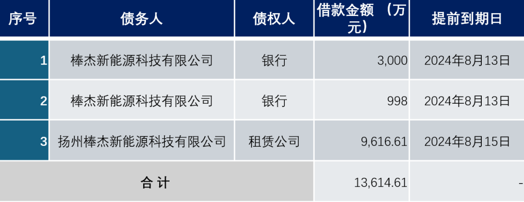 扬州经济技术开发区人民法院,就相关事项设立案号(2024)苏1091破电12号以后,其他的债权人瞬间不淡定了,要求棒杰提前偿还借款。