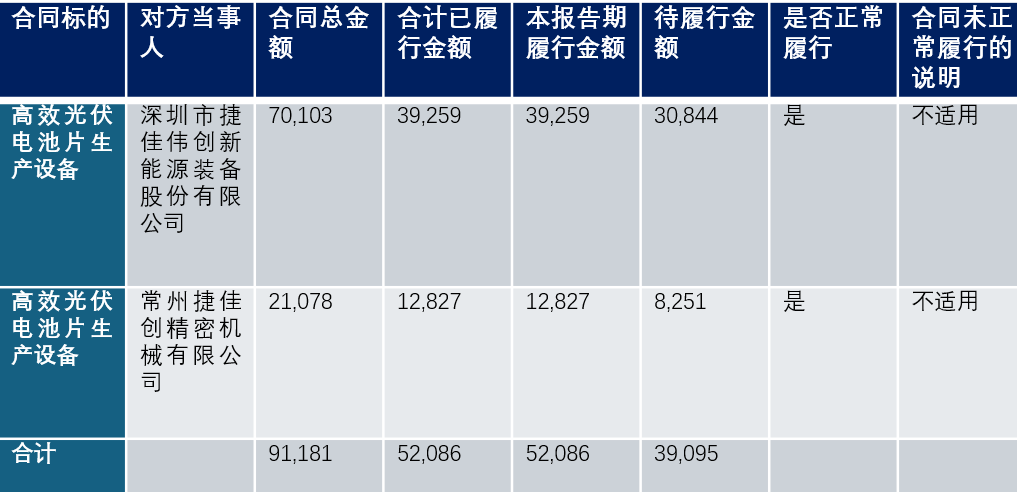 其中,向捷佳伟创直接采购70,103万元(含税),向常州捷佳创21,078万元(含税)。这两个订单合计9.1181亿元,按履约节点进行结算支付。