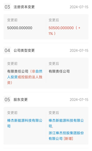 值得关注的是,天眼查显示:扬州棒杰其实一直是棒杰新能源的全资子公司,是上市公司棒杰股份的孙公司。在今年 7月15日,也就是被申请破产重组前1个月,棒杰股份才通过增资扩股的形式成为扬州棒杰的直接股东,并取得了0.9901%股权。