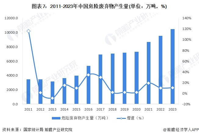 经初步核算,2023年国内危废综合利用处置量约10011万吨。