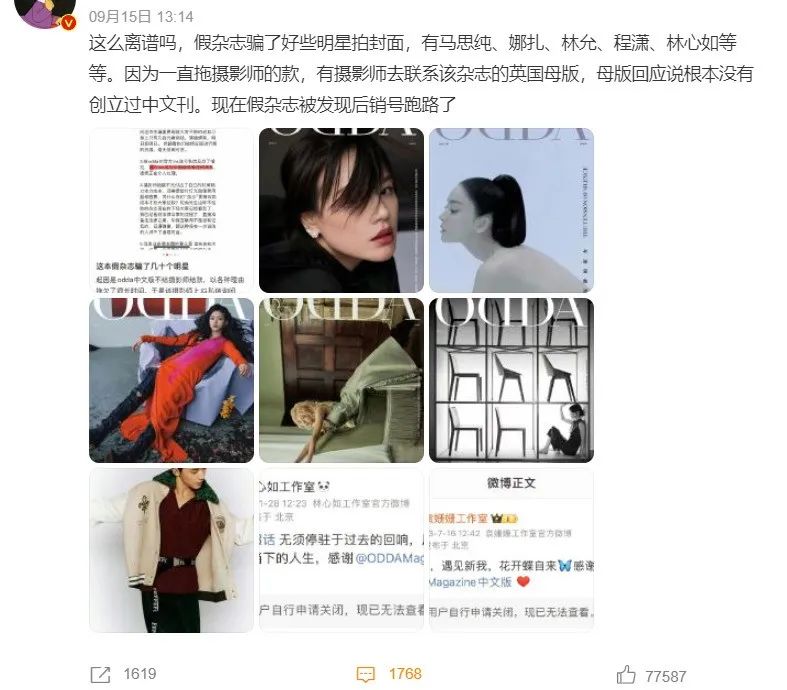 被曝光后,ODDA中文版杂志已在微博销号跑路,所有内容已无法查看。