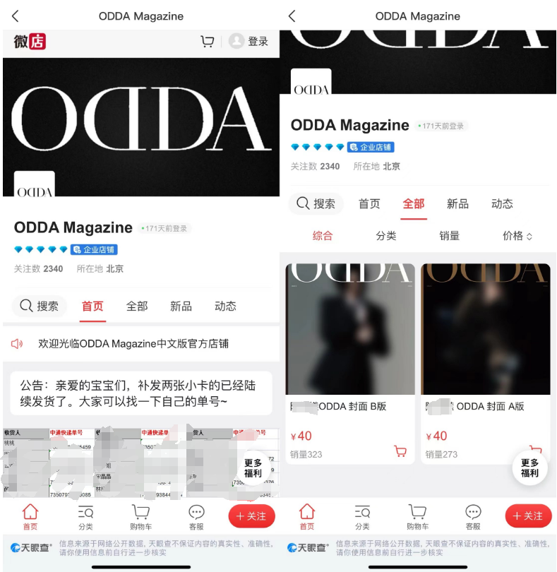 记者发现,ODDA中文版杂志此前曾在微店上售卖杂志。目前店内仍有两期杂志在售,累计销量近600册。有购买了该杂志的网友表示,该杂志原定2月中下旬发货,但直到3月都没有动静。随后商家发起了退款,此时杂志官方微博账号已显示异常。