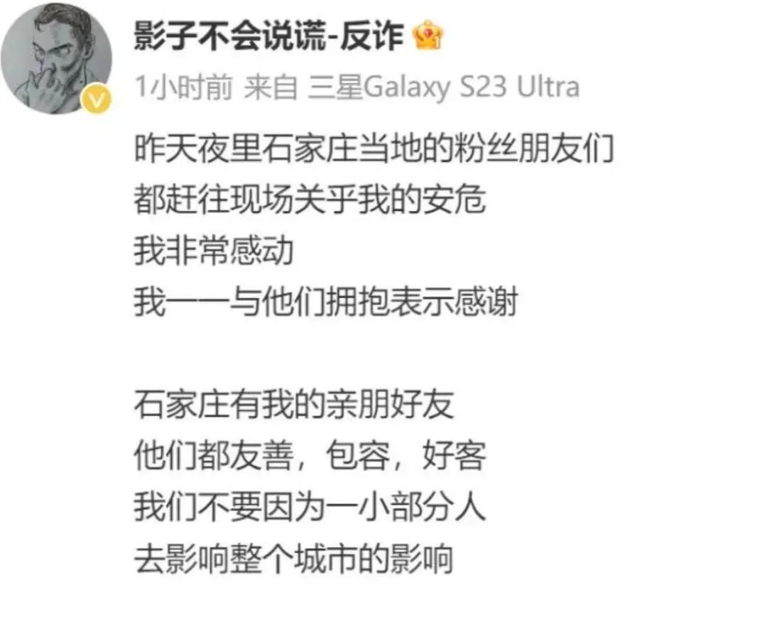 9月25日下午,上述博主发布了关于石家庄事件的回应声明。声明称:“如果石家庄文旅需要,我以及我的团队,愿意为石家庄免费拍摄文旅宣传视频,来补偿石家庄人民,义不容辞地维护石家庄形象”,“我们团队全体五十余人在此对石家庄人民公开致歉”。