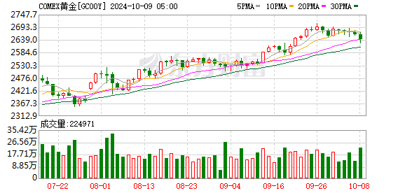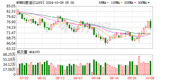 商品市场:国际油价8日显著下跌。截至当天收盘,纽约商品交易所11月交货的轻质原油期货价格下跌3.57美元,收于每桶73.57美元,跌幅为4.63%;12月交货的伦敦布伦特原油期货价格下跌3.75美元,收于每桶77.18美元,跌幅为4.63%。国际金价下跌,截至当天收盘,COMEX黄金期货主力合约下降30.60美元/盎司,涨幅1.15%,报2635.40美元/盎司。