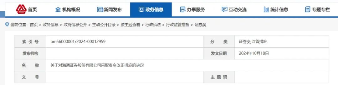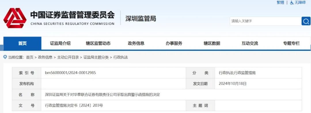 2024年10月18日,证监会官网披露了13家券商及相关人员遭监管措施!