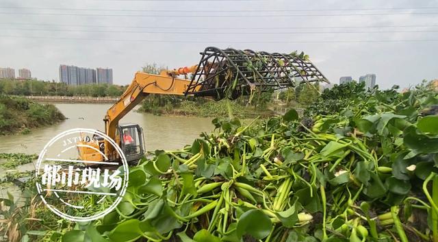 丁国强说,目前,水挖机已经作业了好几天,靠近湖岸边的水葫芦也被打捞起来,下一步他们将继续清理湖中央的水葫芦。