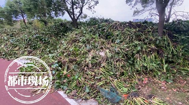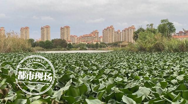 走在寰宇万象公园的绿道上,旁边的湖面长满了水葫芦,据附近的居民说,在五六月份的时候,湖面上只是有些零星的水葫芦,之后随着气温的升高,水葫芦也越长越多。
