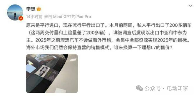 电动知家消息,10月20日,据晚点 Auto 报道,理想汽车的出海步伐较一年前的规划明显放缓。知情人士透露,理想管理层认为出海需要做更充分的准备,比如希望出海车型为当地消费者专属设计,会与国内市场在售车型版本存在一定区别。一位接近理想销售体系的人士表示,理想管理层认为,在宏观经济环境趋紧、市场竞争加剧的情况下,理想需要聚焦资源、主攻国内市场。