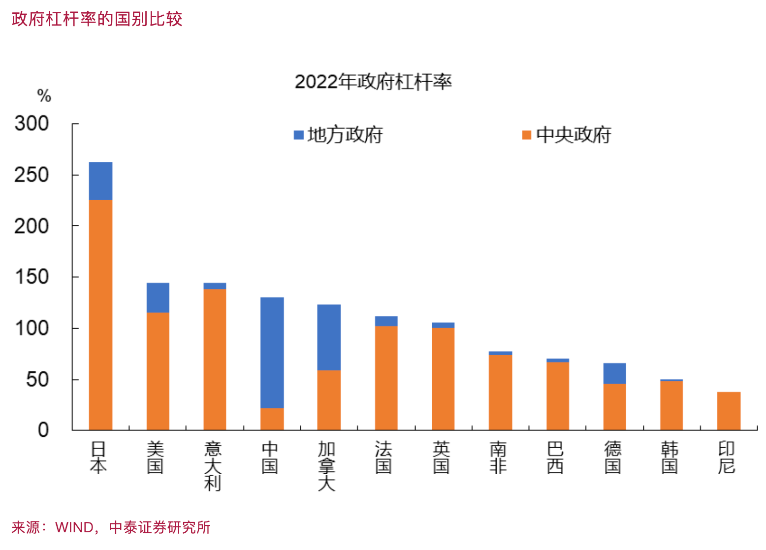 中国作为社会主义公有制国家,是大政府治理模式。大政府与小政府的不同之处体现在政府拥有的资产规模。如果大政府的资产规模越大,是否意味着其负债能力也越强?中国政府的杠杆率水平(加上隐性债)应该在100%左右,明显低于美国,更远低于日本。