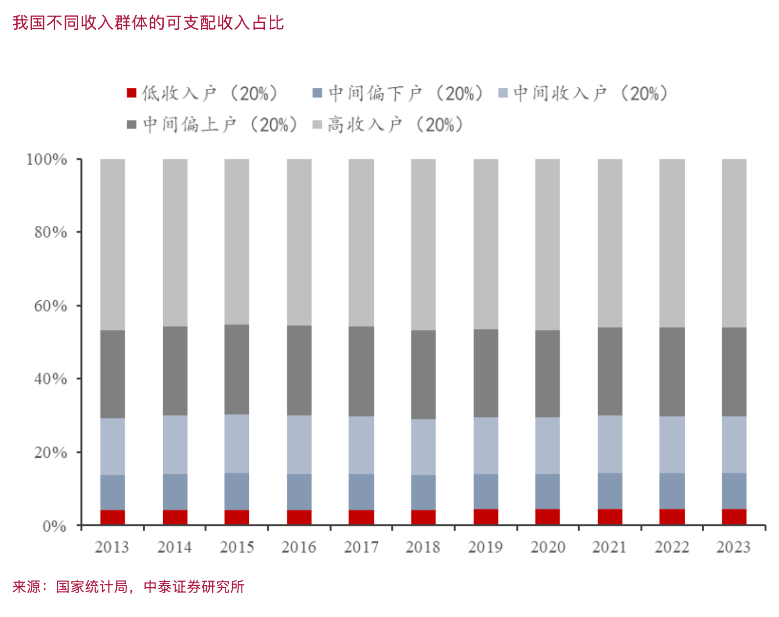 根据国家统计局数据,过去10年来,我国低收入户的收入占比没有上升,20%的人口收入只占4%。尽管第三次分配(社会慈善事业如扶贫等)一直在开展,但其效果不如二次分配(税收调节)好。