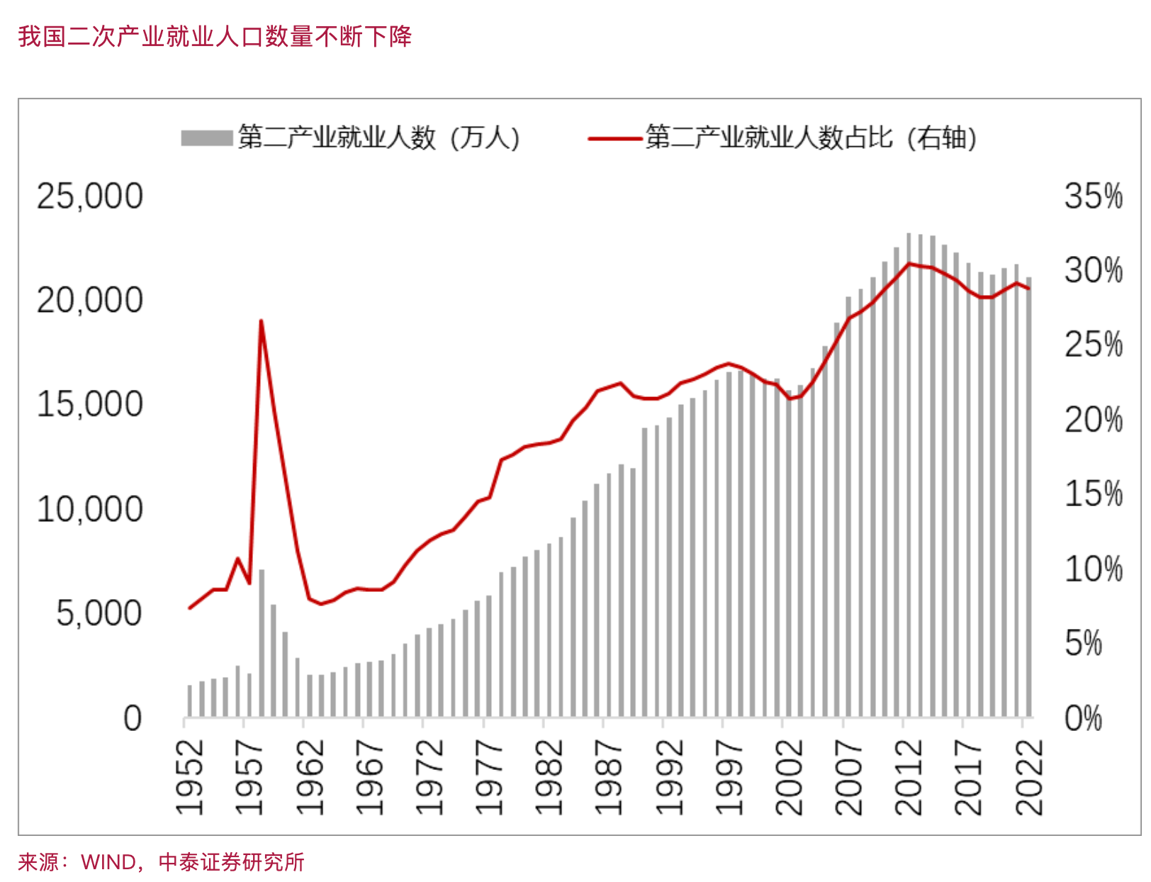 从2013年开始,我国第二产业就业总人口就在下降。这并不等于说不应该投资制造业,中国应该成为制造业强国,同时也应该大力发展能够吸纳更多人就业的服务业。财政支持制造业投资的同时,是否也应该加大对服务业的投资规模?毕竟充分就业是比GDP增速更重要的目标。
