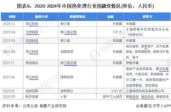 注:上表天利热工业务收入数据为2023年。热处理行业最新投融资动向