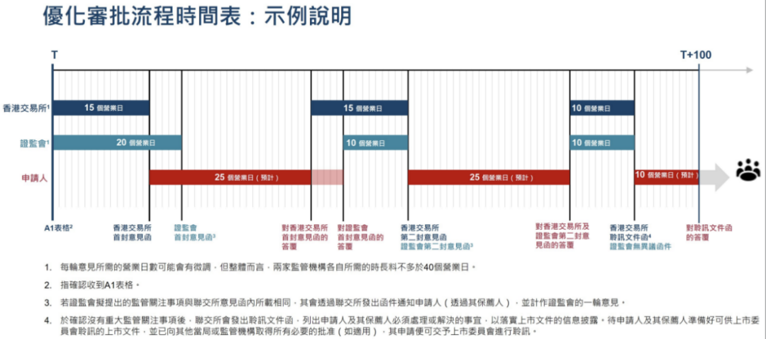 按照优化后的审批流程,申请人及其保荐人预期可于总共约60个营业日内就监管机构提出的意见给予圆满答复。待取得上市委员会及其他相关部门或监管机构批准后,申请程序预计可于6个月的申请有效期内完成。