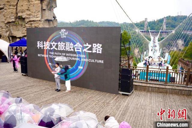 “科技文旅融合之路”对话环节在张家界大峡谷景区举办。作为背景的张家界大峡谷玻璃桥曾创下世界最长、世界最高、世界首座玻璃作为主受力结构的大型桥梁等十项“世界之最”。陈欣怡 摄