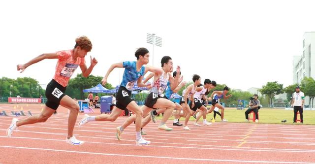 男子组100米预赛。