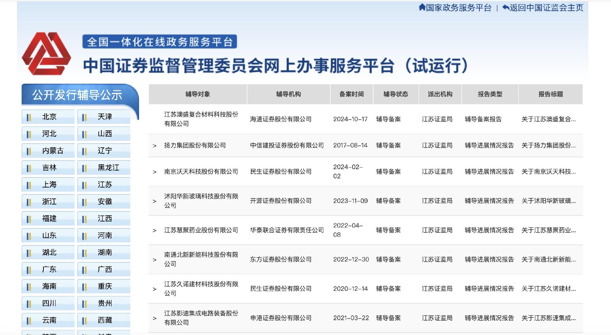 上证报中国证券网讯(记者 操子怡 实习生 张校毓)证监会官网近日公告,江苏澳盛复合材料科技股份有限公司(以下简称“澳盛科技”)在江苏证监局进行辅导备案登记,辅导机构为海通证券。