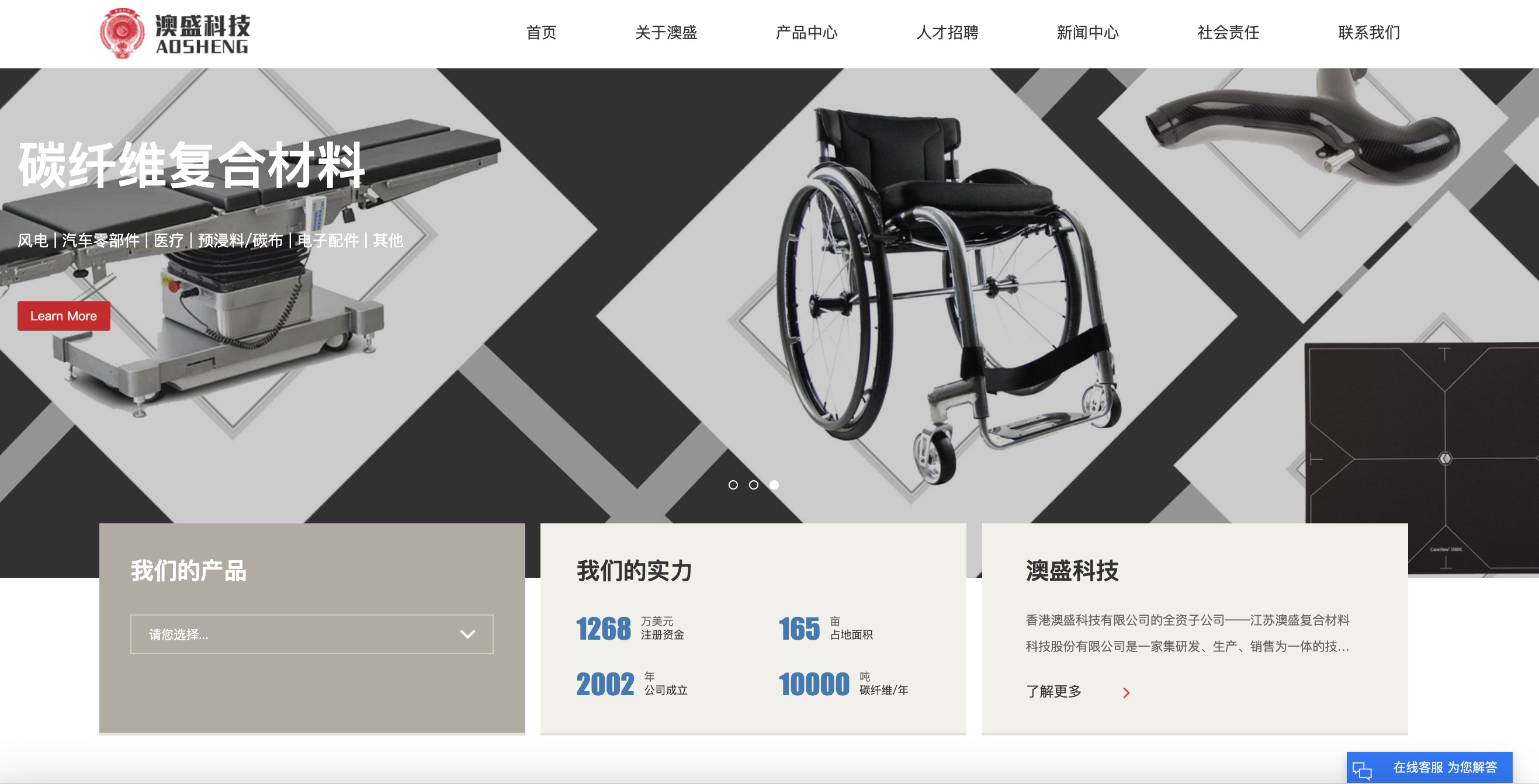 目前,澳盛科技形成了以碳纤维编织布、预浸料为起点,以运动休闲、建筑加固、医疗器械为基本盘,以风机叶片、3C电子、汽车轻量化等为增长极的产业格局。