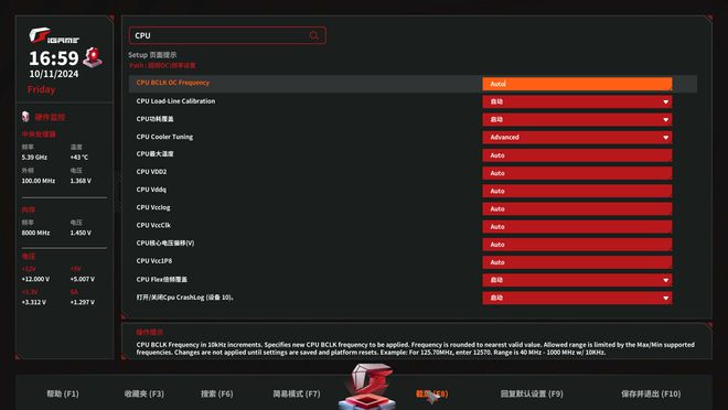 CPU 和内存超频的自定义选项更加丰富,且支持通过搜索功能快速查找对应的调节选项。