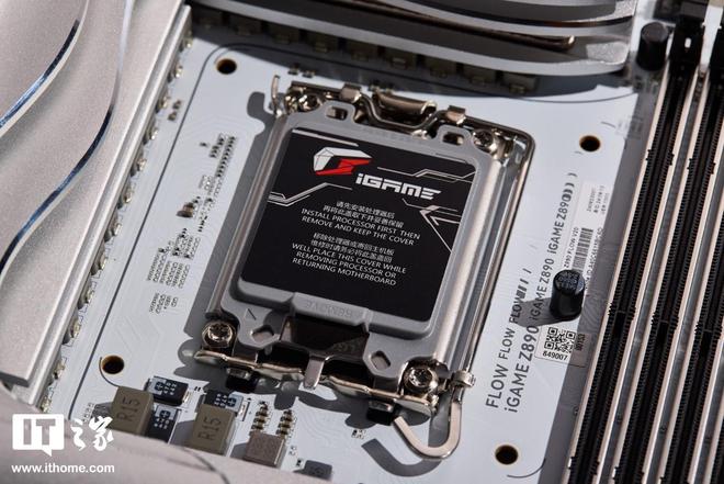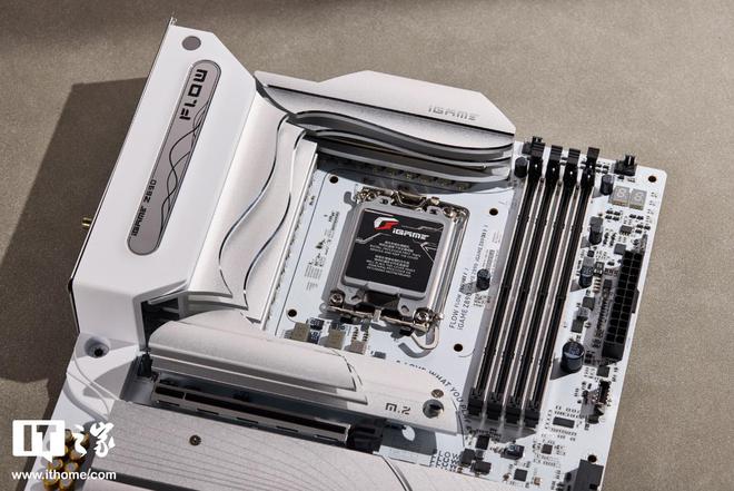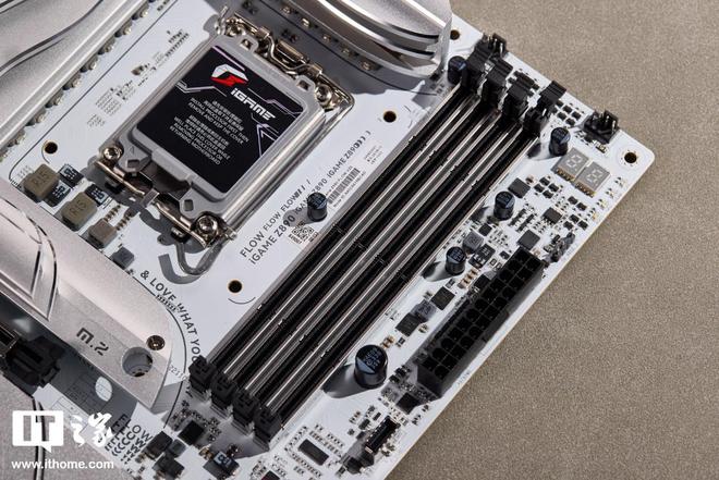 七彩虹 iGAME Z890 FLOW V20 主板延续了上代 FLOW 系列主板的波普艺术美学风格,保持白色 PCB 基调,辅以大面积的银白色装甲,一看就知道出自七彩虹之手。