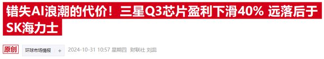 当地时间周四(10月31日),三星电子公布财报显示,公司芯片部门第三季度实现营业利润3.9万亿韩元,远低于上一季度的6.45万亿韩元,环比大降近40%。