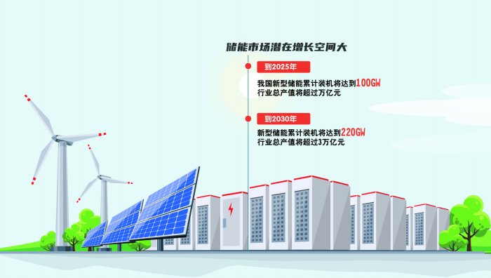 苏波预测,到2025年,我国新型储能累计装机将达到100GW,行业总产值将超过万亿元;到2030年,新型储能累计装机将达到220GW,行业总产值将超过3万亿元。就今年来看,截至9月底,全国已建成、投运新型储能5852万千瓦、1.28亿千瓦时,较去年底增长约86%;1月至8月,全国新型储能累计充放电量约260亿千瓦时,等效利用小时数约620小时,有效支撑了电力系统稳定运行和可靠供应。