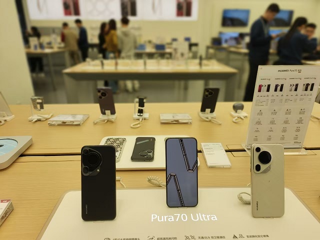 深圳华强北华为体验店展示Pura 70 Ultra手机