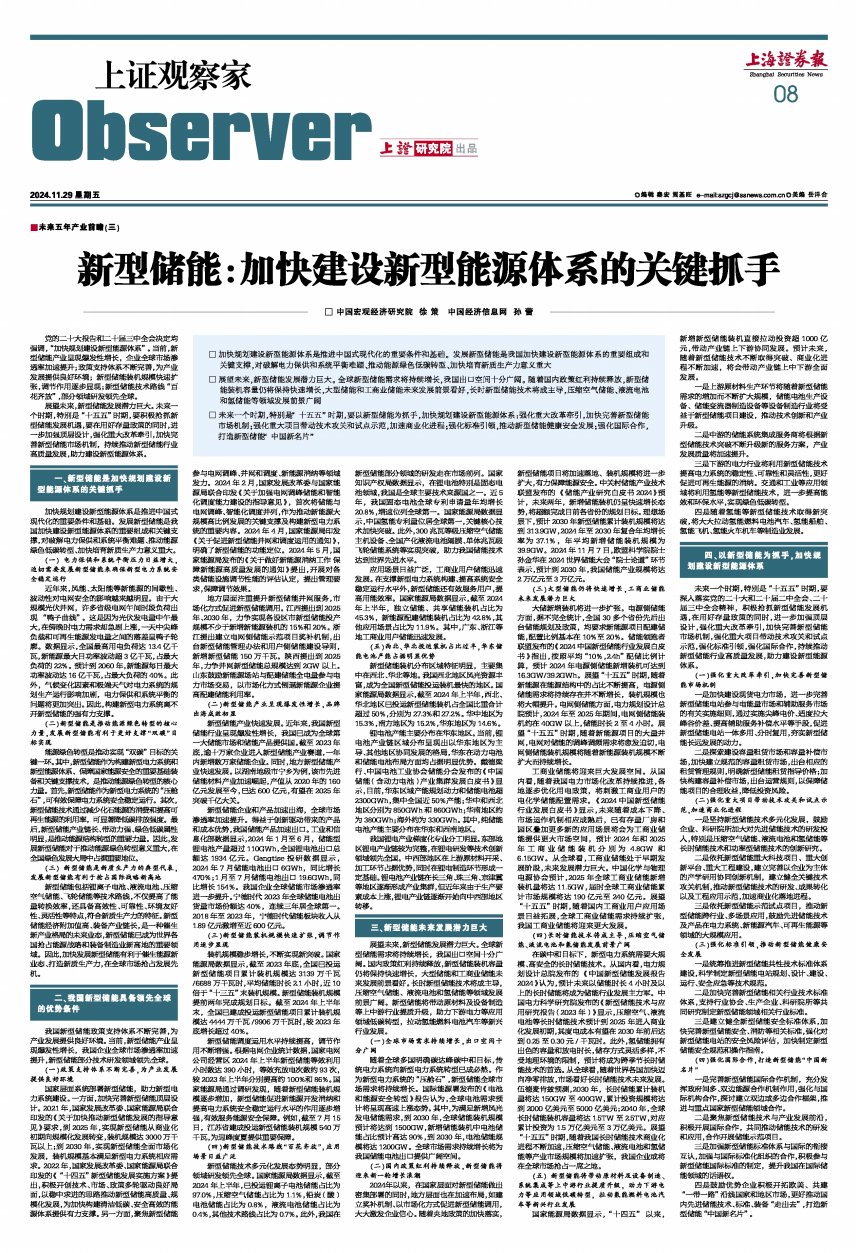 党的二十大报告和二十届三中全会决定均强调,“加快规划建设新型能源体系”。当前,新型储能产业呈现爆发性增长,企业全球市场渗透率加速提升;政策支持体系不断完善,为产业发展提供良好环境;新型储能装机规模快速扩张,调节作用逐步显现;新型储能技术路线“百花齐放”,部分领域研发领先全球。