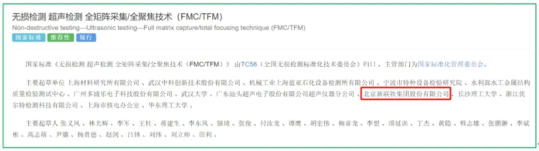 2024年4月,由神州高铁子公司新联铁参编的GB/T 43921-2024《无损检测 超声检测 全矩阵采集/全聚焦技术》国家标准正式发布与实施。