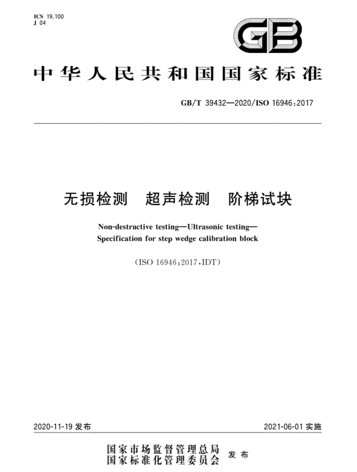 该标准等同采用ISO16946:2017标准,与国际标准相接轨,以便于加强全球贸易。该标准的阶梯试块,是一种便携式超声波试块,体积小,重量轻,适合于携带去现场检测用的检测器材。在实际检测过程中,阶梯试块用于简单快速地调节超声设备的时基线和检测灵敏度。