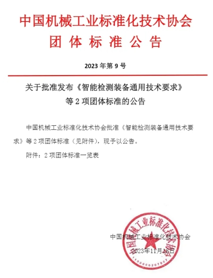 《智能检测装备通用技术要求》团体标准规定了智能检测装备的系统架构、分类及技术要求等,适用于指导制造商、用户、科研院所等相关机构开展智能检测装备的研发、制造与检测评估。该标准是智能检测装备首项基础核心标准,旨在落实2023年工业和信息化部、国家市场监督管理总局等七部委联合印发的《智能检测装备产业发展行动计划(2023—2025 年)》,为智能检测装备产业提供了基础规范,解决了智能检测装备核心技术标准缺失的问题,推动智能检测装备充分发挥稳定生产运行、保障产品质量、提升制造效率、确保服役安全的重要作用。