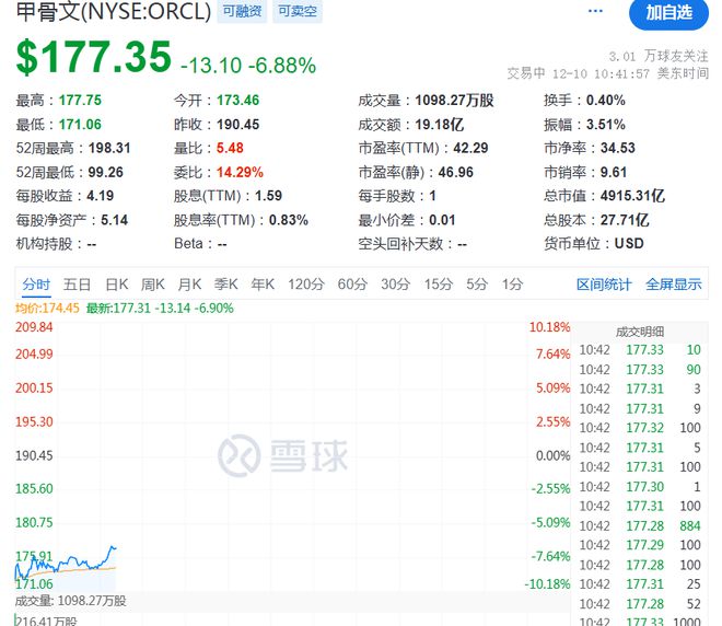 甲骨文公司股价大跌。消息面上,该公司财季收入和利润双双增长,但不及分析师预期。