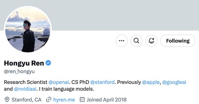 Hongyu Ren本科毕业于北京大学,并于斯坦福大学取得计算机科学博士学位。加入OpenAI以前曾在Apple、Google、NVIDIA和Microsoft担任实习研究员。
